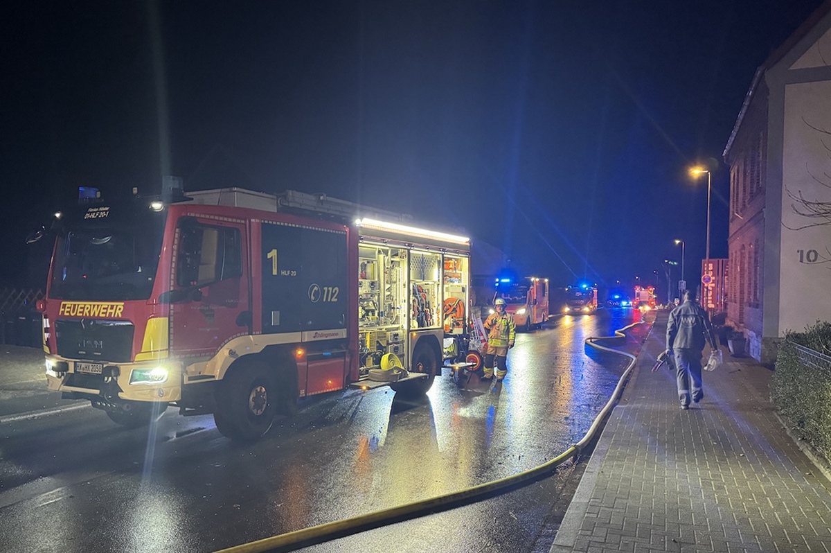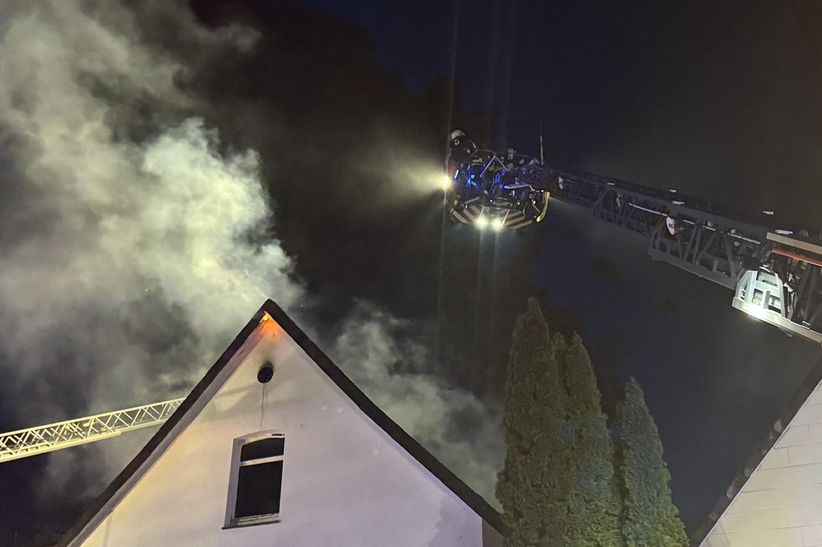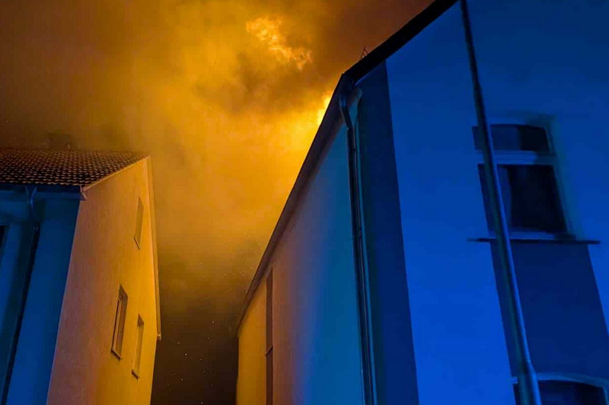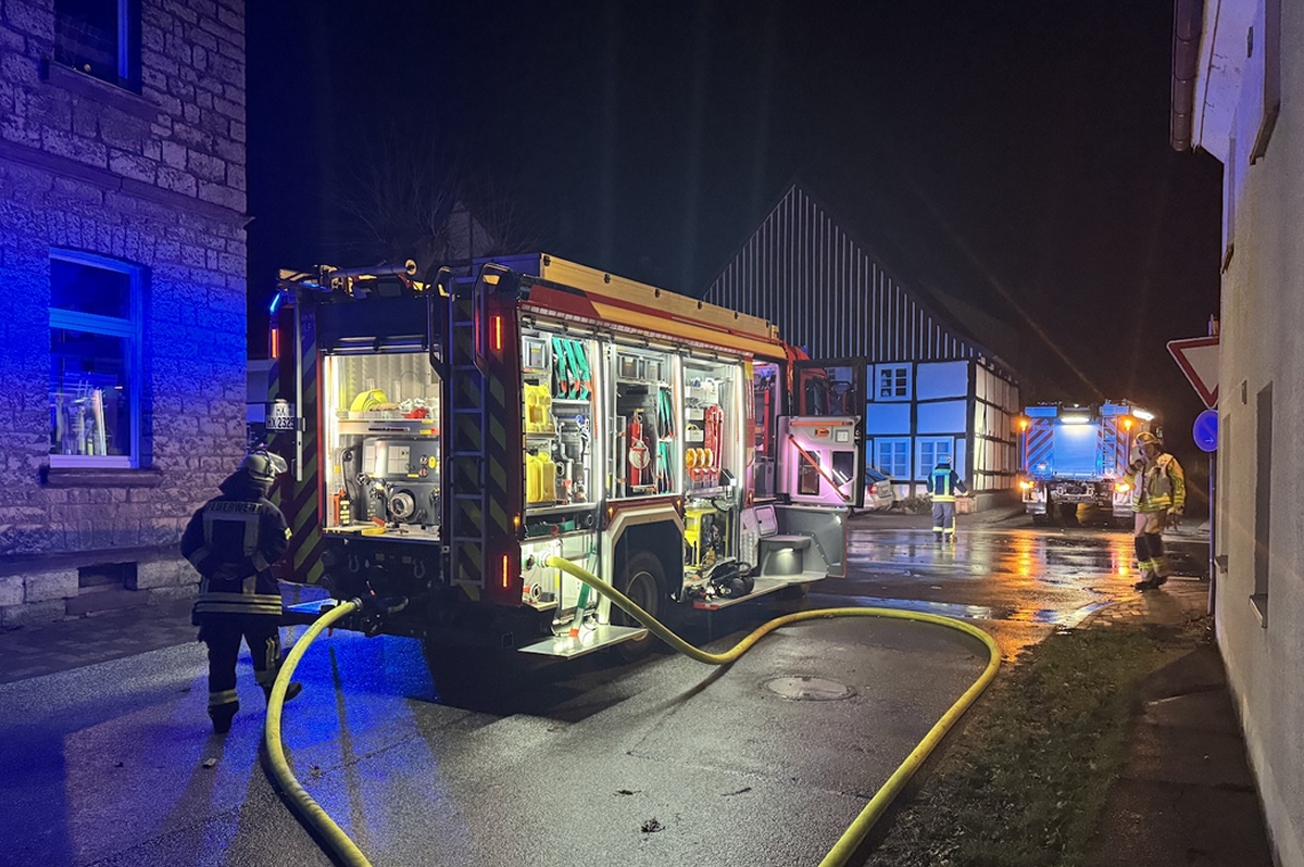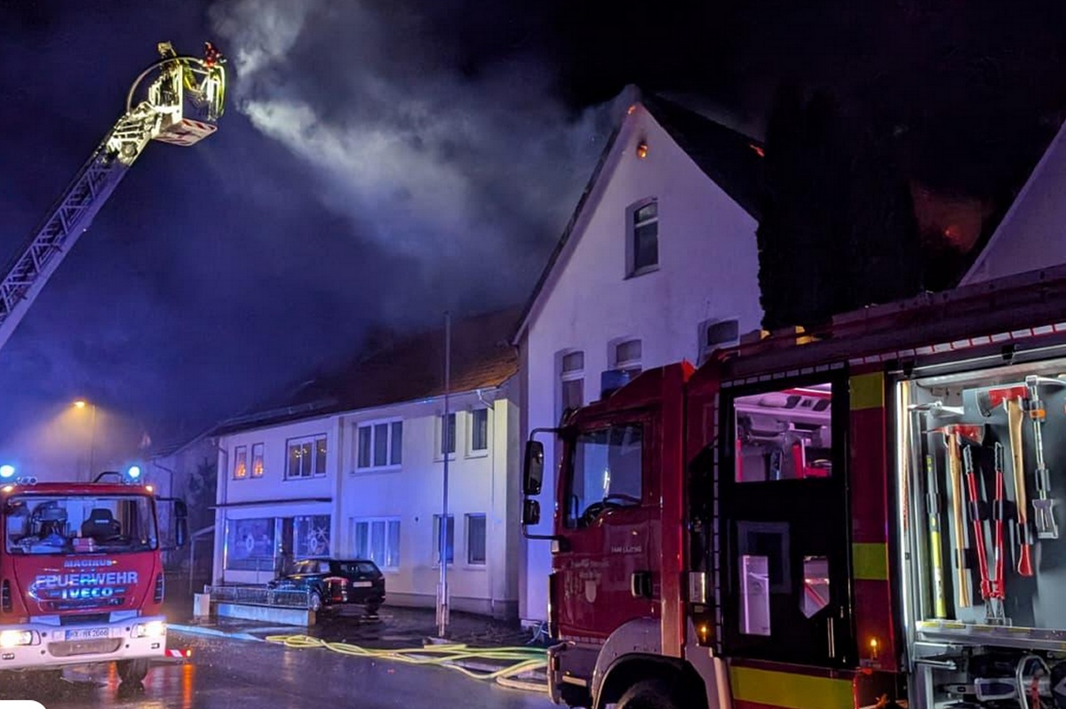 Ottbergen (TKu). Ein verherender Dachstuhlbrand hat in der Silvester- und Neujahrsnacht 2026 für einen Großeinsatz der Feuerwehr in Höxter-Ottbergen gesorgt. Gegen 0.15 Uhr wurden die Einsatzkräfte zu einem Wohnhaus an der Höxterschen Straße, Ecke Nethestraße, alarmiert. Beim Eintreffen der ersten Feuerwehrkräfte stand der Dachstuhl des Einfamilienhauses bereits in Vollbrand. Feuer schlug durch die Dachhaut und die gesamte Straße war stark verraucht, wie Zeugen berichten. Der Dachstuhl brannte vollständig aus. Nach Angaben der Polizei handelte es sich um den größten Brand im Kreis Höxter in dieser Neujahrsnacht neben zahlreichen kleineren Hecken- oder Mülltonnenbränden. Dank des schnellen und professionellen Eingreifens der Feuerwehr konnte ein Übergreifen der Flammen auf zwei unmittelbar benachbarte Häuser verhindert werden. Verletzt wurde durch den Großbrand niemand, die Bewohner des Hauses konnten das Gebäude noch rechtzeitig verlassen.