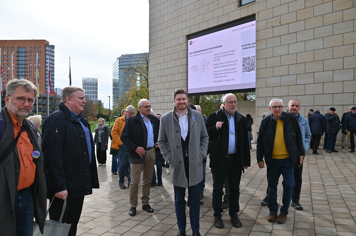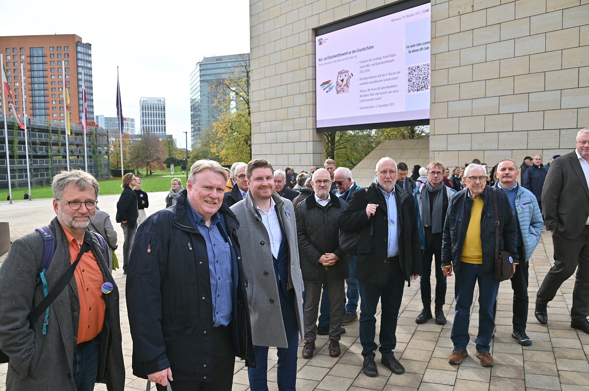 Höxter/Düsseldorf (red). Eine Delegation aus 35 Personen reiste am 29.10. in den Düsseldorfer Landtag. Studierende, Lokalpolitiker, Unterstützer und Mitglieder des „Aktionskreises Lehre am Hochschulstandort Höxter“ übergaben 6.099 Unterschriften des Bürgervotums am Rande einer Sitzung des Wissenschaftsausschusses. Mit dabei waren die Kreisdirektorin Manuela Kupsch und Bürgermeister Daniel Hartmann. Die Unterschriften wurden von der NRW-Wissenschaftsministerin Ina Brandes sowie Mitgliedern des Ausschusses entgegengenommen.