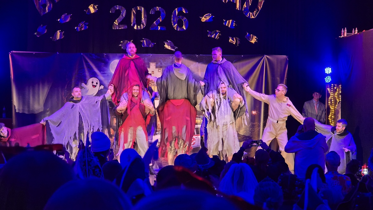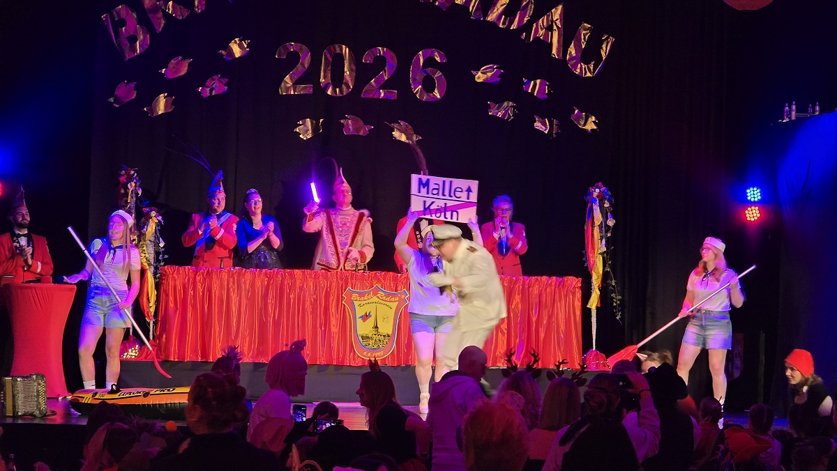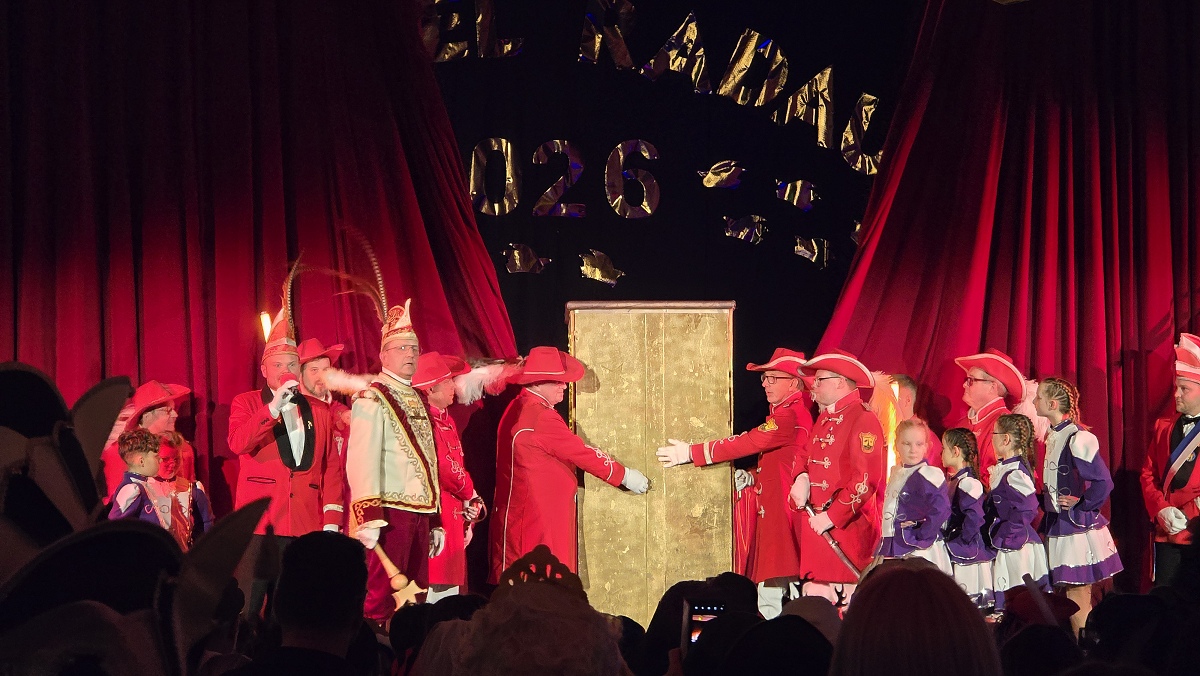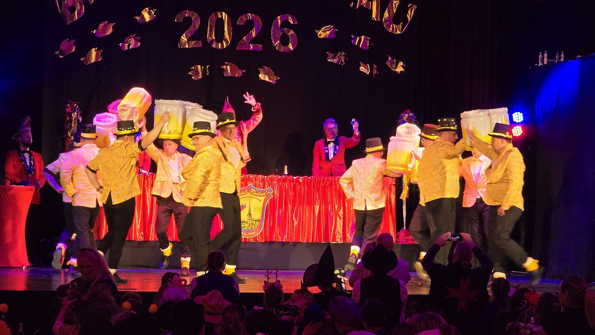 Zuvor hatte sich das scheidende Prinzenpaar Verena und Andreas Futoma mit viel Wehmut vom Narrenvolk verabschiedet. Anschließend bot sich den Gästen ein abwechslungsreiches und hochklassiges Bühnenprogramm. Gruppen wie die Wilden Hühner, die Nethesterne, die blau-weiße Garde aus Brakel, Rott 5 aus Nieheim, die Drohndancer aus Brakel sowie das Tanzcorps Kölsche Vita sorgten mit Gardetänzen und Showeinlagen für Begeisterung. Humorvoll und souverän führten Präsident Steffen Rehermann und zeitweise auch Prinz Mark Elberg durch den Abend. Zahlreiche befreundete Karnevalsgesellschaften und Vereine aus der Region waren mit Abordnungen zu Gast und feierten gemeinsam mit den Brakeler Närrinnen und Narren. Erst spät am Abend fand das offizielle Programm mit einem großen Finale seinen krönenden Abschluss. Doch damit war noch lange nicht Schluss: In der Stadthalle wurde anschließend bis in die frühen Morgenstunden ausgelassen weitergefeiert.