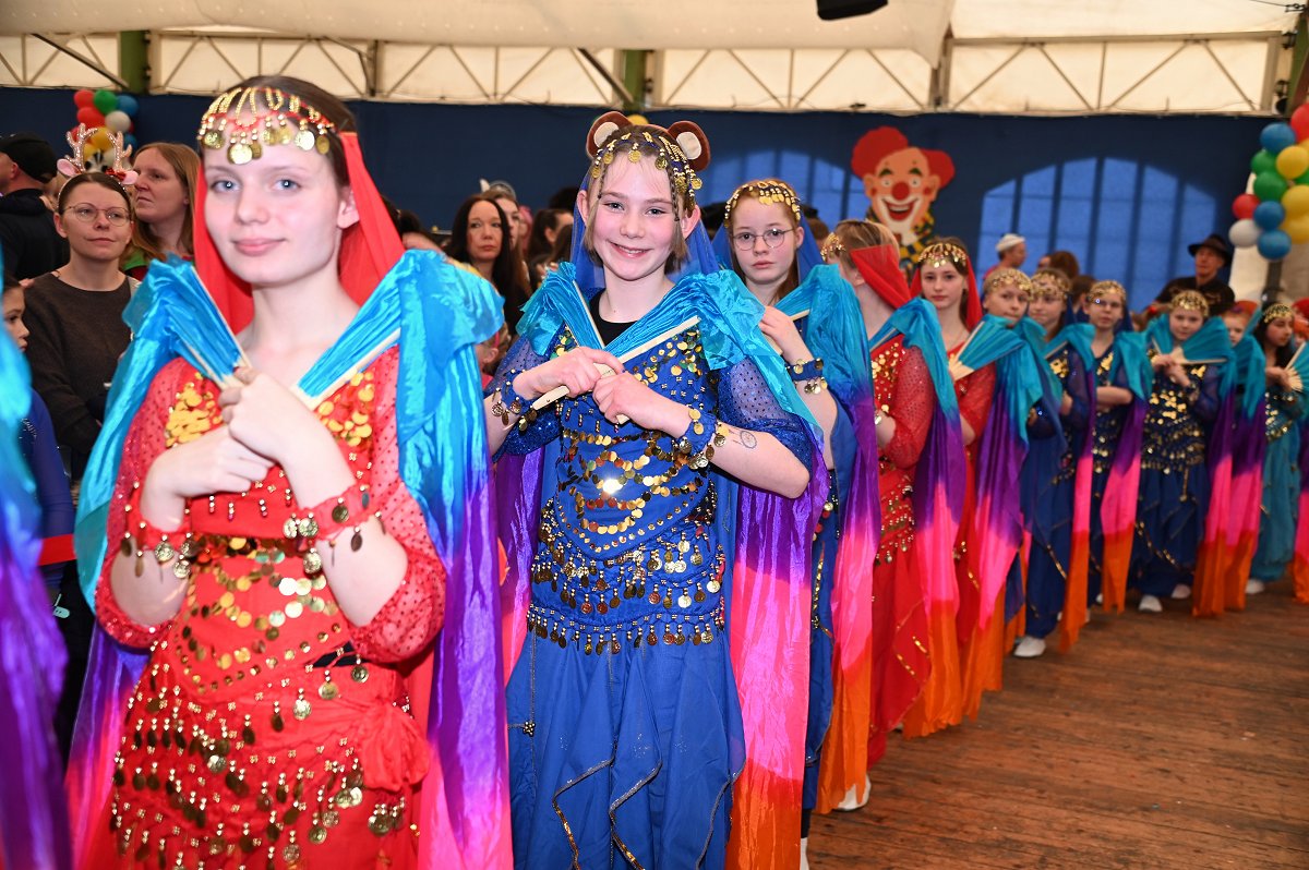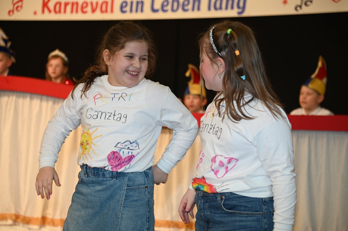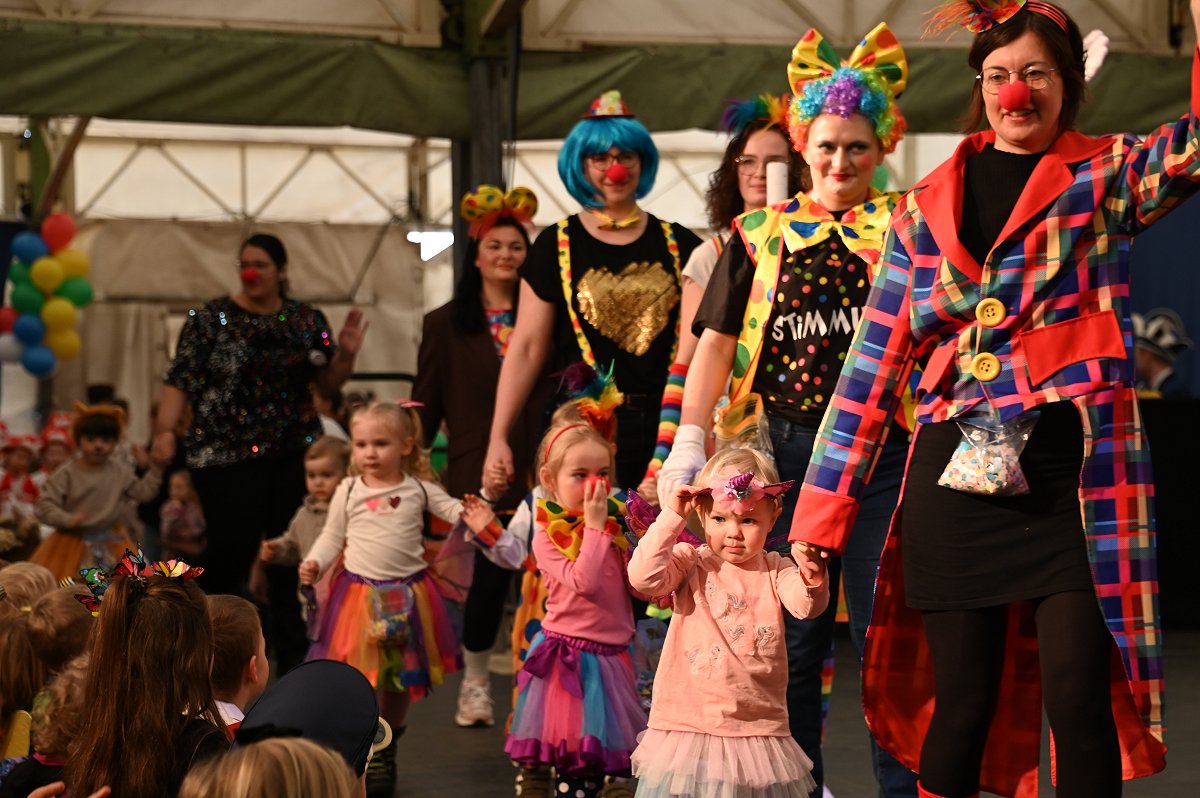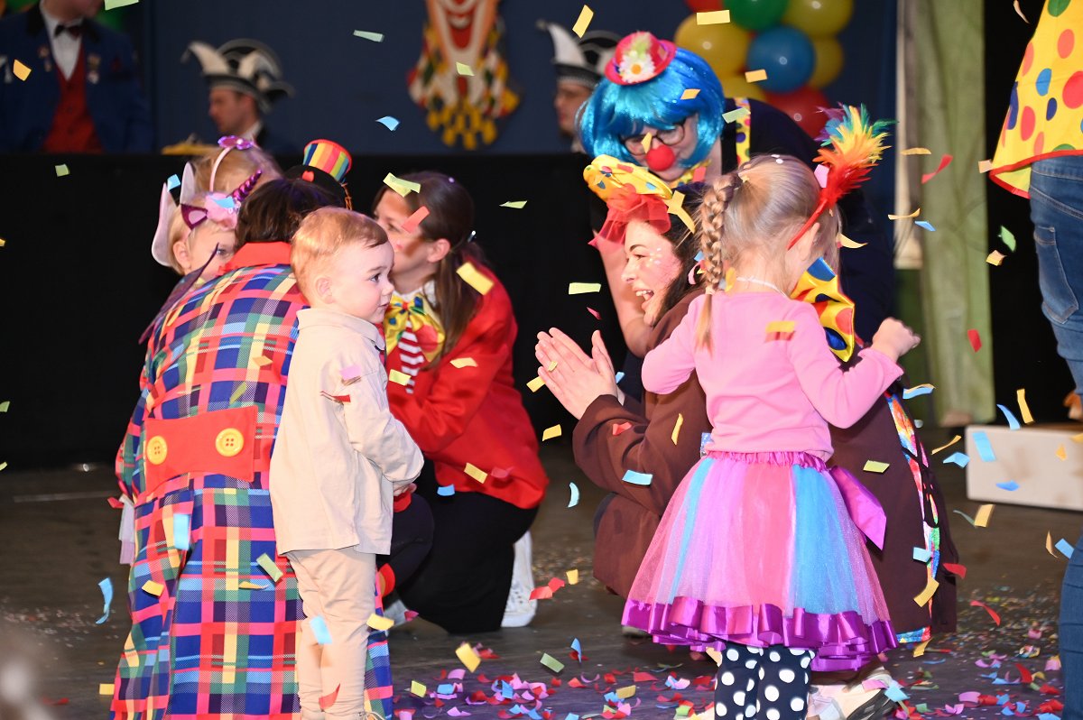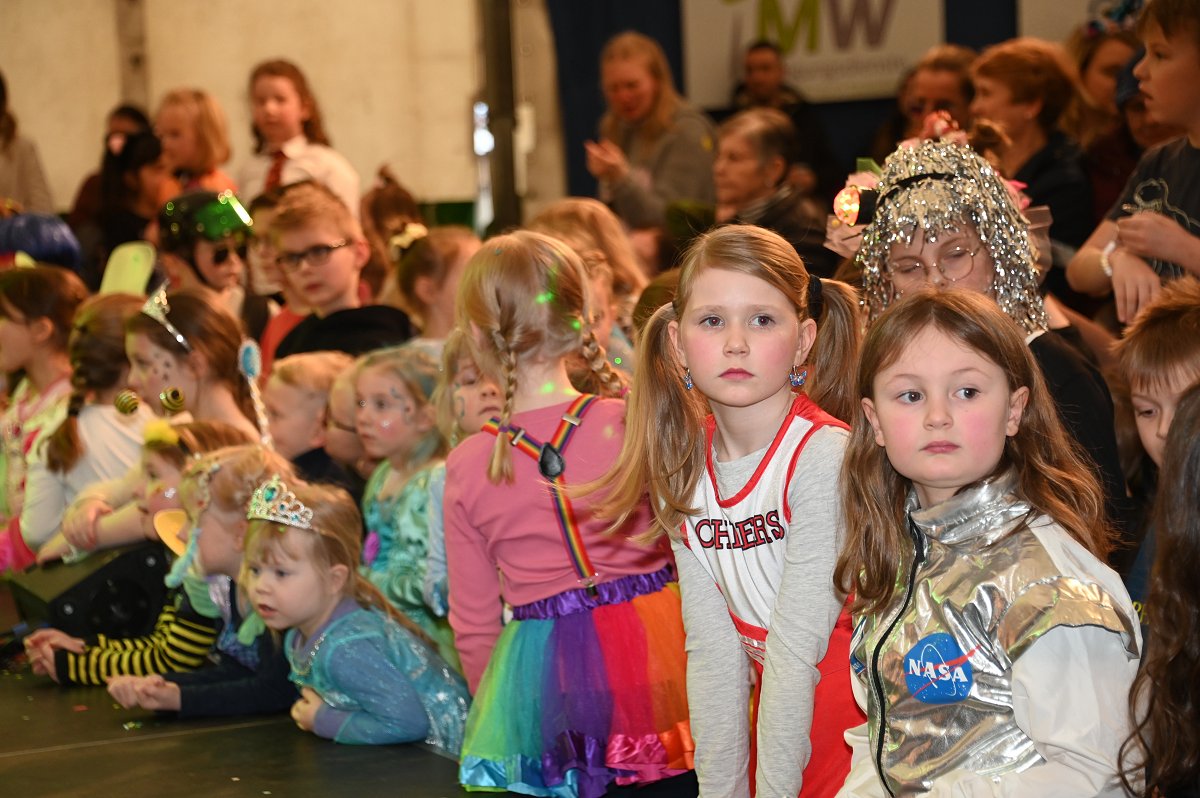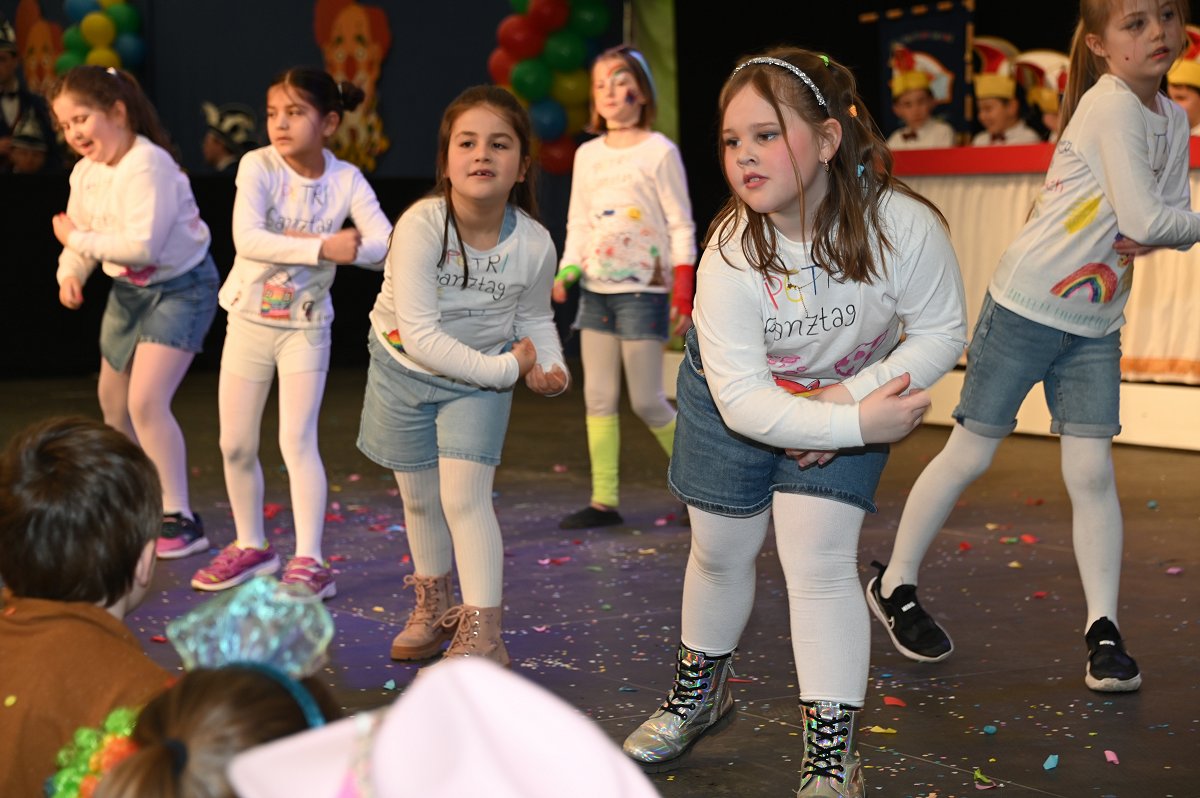 Durch das Programm führte Kinderpräsident Henri Schmidt, der souverän und gut gelaunt durch den Nachmittag leitete. Begleitet wurde er vom amtierenden Kinderprinzenpaar Prinz Linus der Fußballbegeisterte (Gorzolka) und Prinzessin Mathilda die Magische (Jordan). Nach ihren Grußworten dankte das Publikum dem Prinzenpaar mit kräftigem Applaus für den schwungvollen Ehrentanz. Im weiteren Verlauf präsentierten zahlreiche Gruppen ihr Können auf der Bühne. Tänze wie die Karnevalsmaus, ein orientalischer Tanz, mehrere Gardetänze, ein „Olaf-der-Schneemann-Tanz“, ein Hip-Hop-Tanz sowie weitere Darbietungen sorgten für Abwechslung und Begeisterung. Mitwirkende waren unter anderem die Kinderprinzengarde, der Kindergarten Ovenhausen, der Petri-Ganztag, die Fünkchen und Funken Ossendorf, die Eltern-Kind-Turngruppe, die Kindergarde Ottbergen, die Tanzmäuse Erkeln sowie die Ehren- und die Teeniegarde. Ein süßer Höhepunkt bildete den Abschluss des Nachmittags: Bonbons für alle Kinder, die vom Kinderprinzenpaar gemeinsam mit dem Kinderpräsidenten in die jubelnde Menge geworfen wurden.