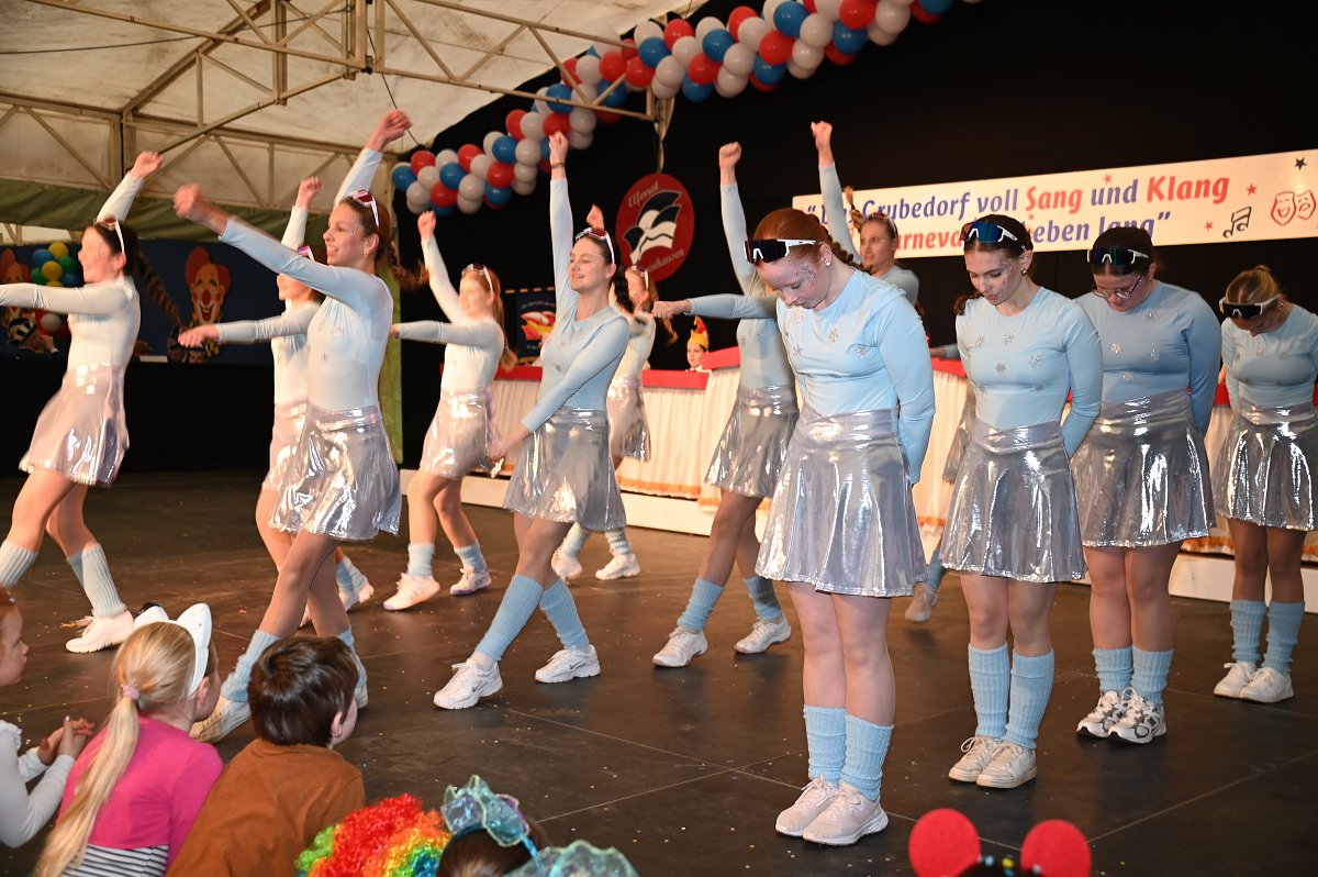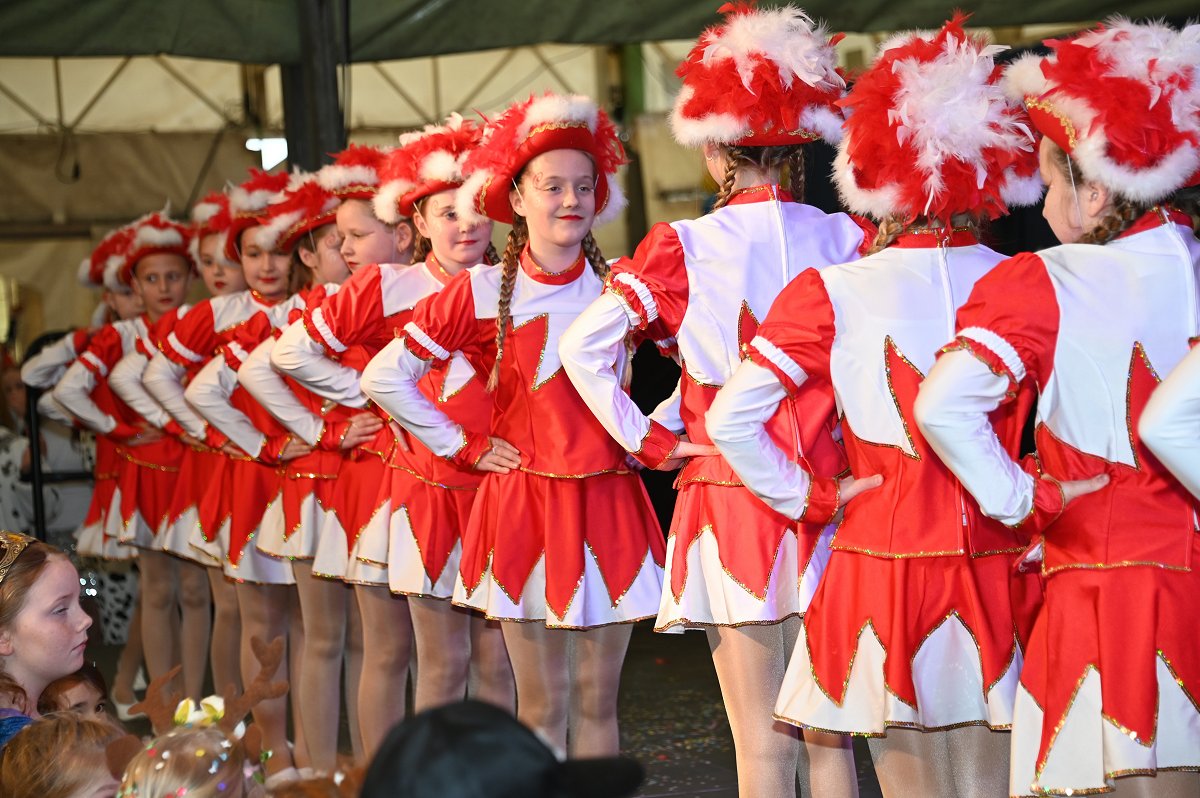 Ovenhausen (TKu). Ein fröhlich-buntes Treiben, mitreißende Musik und leuchtende Kinderaugen bestimmten am Sonntag das Bild im Festzelt am Ovenhäuser Dreiort. Der Kinderkarneval in Ovenhausen lockte mehr als 777 kleine und große Närrinnen und Narren an, die gemeinsam ein zweistündiges Bühnenprogramm mit anschließender Kinderparty feierten. Dabei stand alles unter dem Sessionsmotto „Das Grubedorf voll Sang und Klang – Karneval ein Leben lang“. Das Festzelt verwandelte sich in eine farbenfrohe Karnevalswelt. Lautstark und ausgelassen verfolgten die Kinder das Geschehen und rückten dabei immer näher an die Bühne heran, um jeden Tanz und jede Bewegung aus nächster Nähe mitzuerleben. Die Vielfalt der Kostüme reichte von Astronauten, Prinzessinnen und Cheerleadern über Bienchen und Cowboys bis hin zu Clowns und sorgte für ein buntes Gesamtbild.