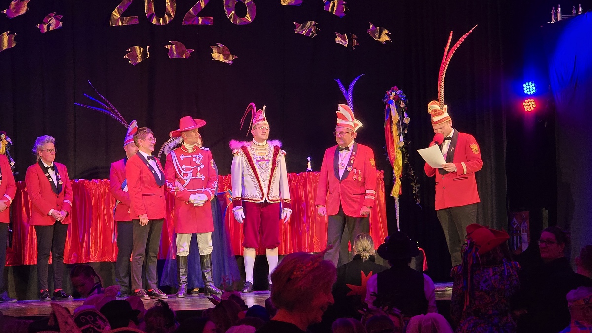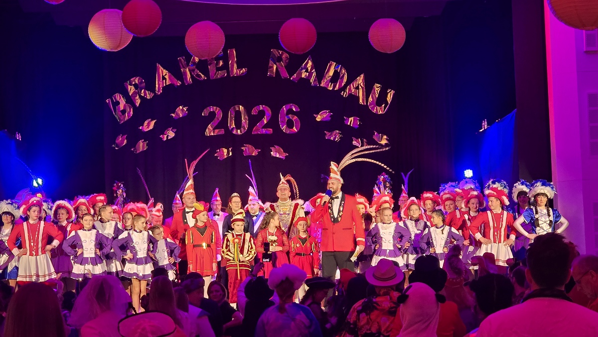 Zuvor hatte sich das scheidende Prinzenpaar Verena und Andreas Futoma mit viel Wehmut vom Narrenvolk verabschiedet. Anschließend bot sich den Gästen ein abwechslungsreiches und hochklassiges Bühnenprogramm. Gruppen wie die Wilden Hühner, die Nethesterne, die blau-weiße Garde aus Brakel, Rott 5 aus Nieheim, die Drohndancer aus Brakel sowie das Tanzcorps Kölsche Vita sorgten mit Gardetänzen und Showeinlagen für Begeisterung. Humorvoll und souverän führten Präsident Steffen Rehermann und zeitweise auch Prinz Mark Elberg durch den Abend. Zahlreiche befreundete Karnevalsgesellschaften und Vereine aus der Region waren mit Abordnungen zu Gast und feierten gemeinsam mit den Brakeler Närrinnen und Narren. Erst spät am Abend fand das offizielle Programm mit einem großen Finale seinen krönenden Abschluss. Doch damit war noch lange nicht Schluss: In der Stadthalle wurde anschließend bis in die frühen Morgenstunden ausgelassen weitergefeiert.