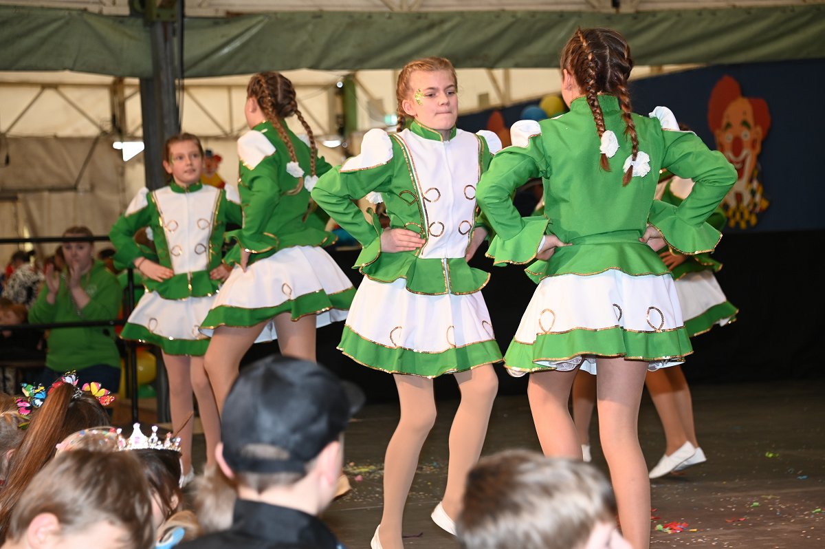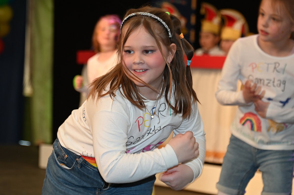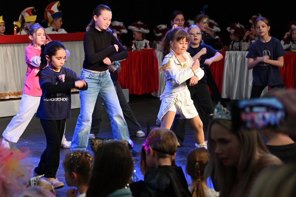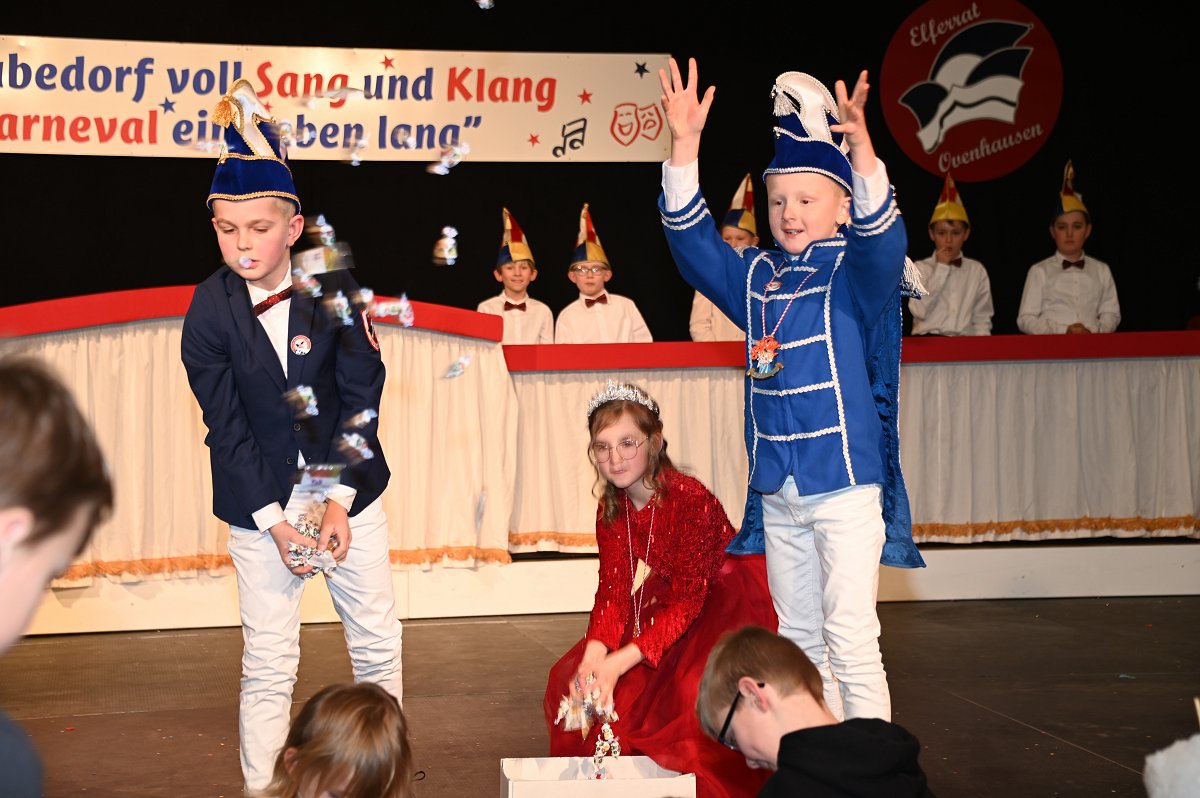 Durch das Programm führte Kinderpräsident Henri Schmidt, der souverän und gut gelaunt durch den Nachmittag leitete. Begleitet wurde er vom amtierenden Kinderprinzenpaar Prinz Linus der Fußballbegeisterte (Gorzolka) und Prinzessin Mathilda die Magische (Jordan). Nach ihren Grußworten dankte das Publikum dem Prinzenpaar mit kräftigem Applaus für den schwungvollen Ehrentanz. Im weiteren Verlauf präsentierten zahlreiche Gruppen ihr Können auf der Bühne. Tänze wie die Karnevalsmaus, ein orientalischer Tanz, mehrere Gardetänze, ein „Olaf-der-Schneemann-Tanz“, ein Hip-Hop-Tanz sowie weitere Darbietungen sorgten für Abwechslung und Begeisterung. Mitwirkende waren unter anderem die Kinderprinzengarde, der Kindergarten Ovenhausen, der Petri-Ganztag, die Fünkchen und Funken Ossendorf, die Eltern-Kind-Turngruppe, die Kindergarde Ottbergen, die Tanzmäuse Erkeln sowie die Ehren- und die Teeniegarde. Ein süßer Höhepunkt bildete den Abschluss des Nachmittags: Bonbons für alle Kinder, die vom Kinderprinzenpaar gemeinsam mit dem Kinderpräsidenten in die jubelnde Menge geworfen wurden.
