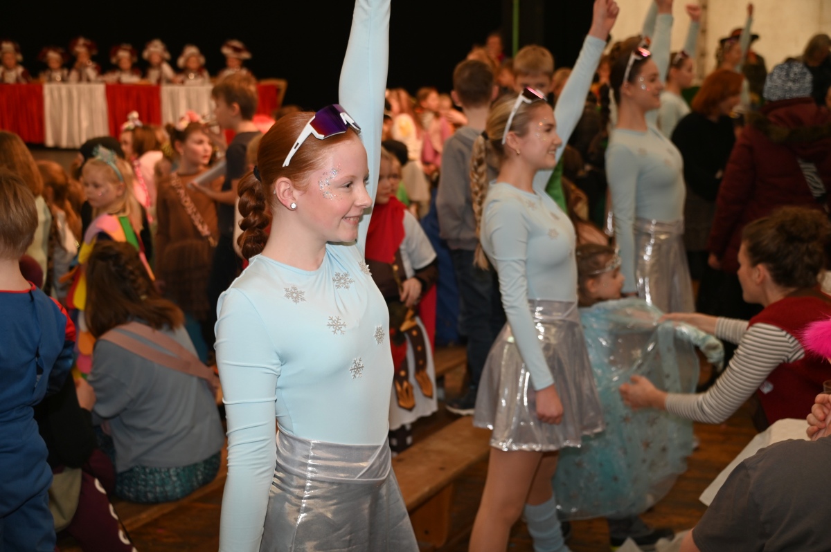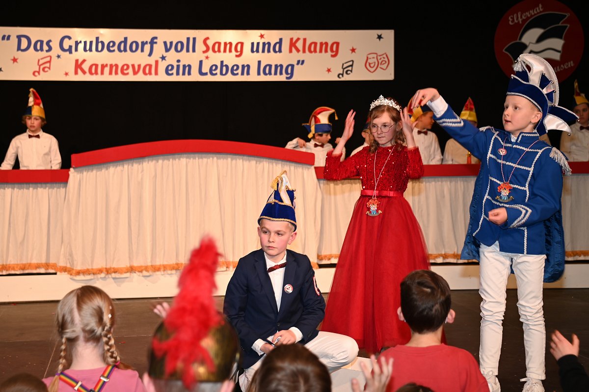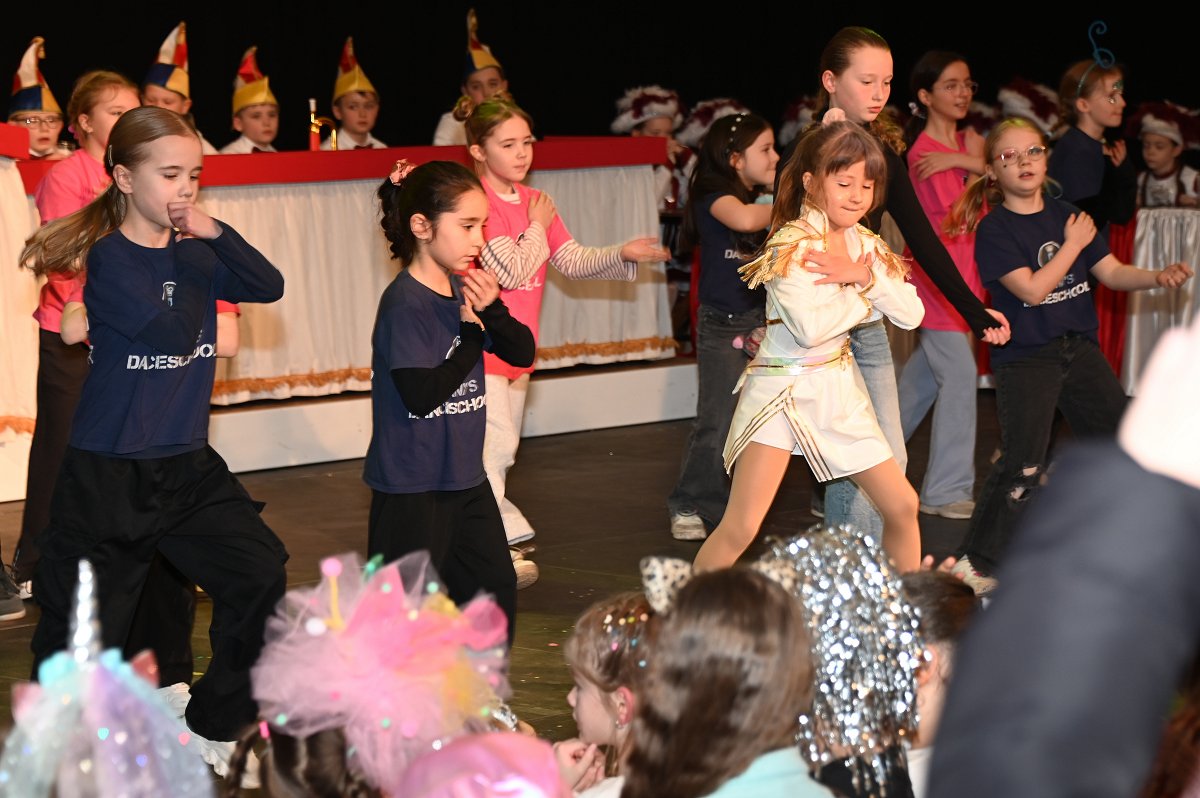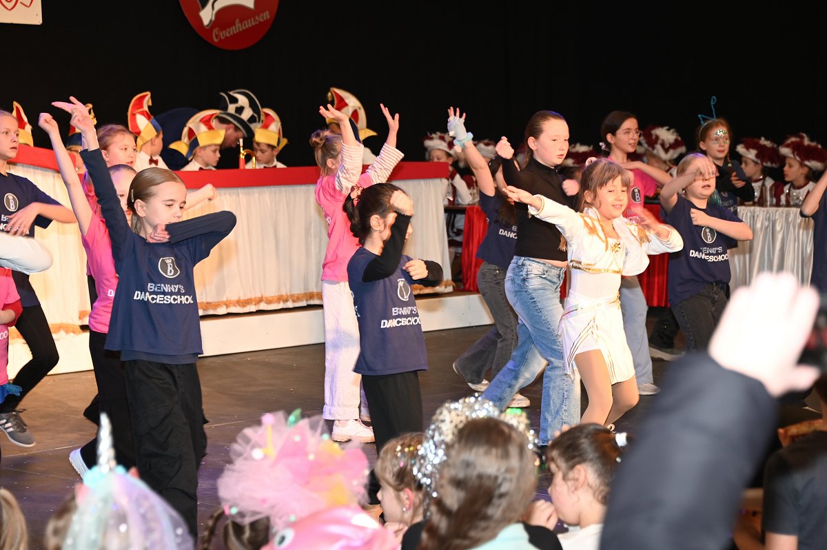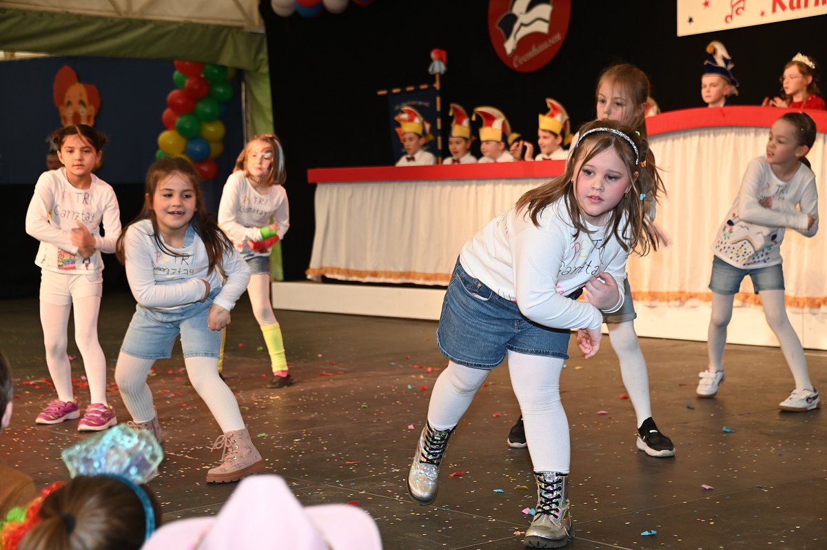 Durch das Programm führte Kinderpräsident Henri Schmidt, der souverän und gut gelaunt durch den Nachmittag leitete. Begleitet wurde er vom amtierenden Kinderprinzenpaar Prinz Linus der Fußballbegeisterte (Gorzolka) und Prinzessin Mathilda die Magische (Jordan). Nach ihren Grußworten dankte das Publikum dem Prinzenpaar mit kräftigem Applaus für den schwungvollen Ehrentanz. Im weiteren Verlauf präsentierten zahlreiche Gruppen ihr Können auf der Bühne. Tänze wie die Karnevalsmaus, ein orientalischer Tanz, mehrere Gardetänze, ein „Olaf-der-Schneemann-Tanz“, ein Hip-Hop-Tanz sowie weitere Darbietungen sorgten für Abwechslung und Begeisterung. Mitwirkende waren unter anderem die Kinderprinzengarde, der Kindergarten Ovenhausen, der Petri-Ganztag, die Fünkchen und Funken Ossendorf, die Eltern-Kind-Turngruppe, die Kindergarde Ottbergen, die Tanzmäuse Erkeln sowie die Ehren- und die Teeniegarde. Ein süßer Höhepunkt bildete den Abschluss des Nachmittags: Bonbons für alle Kinder, die vom Kinderprinzenpaar gemeinsam mit dem Kinderpräsidenten in die jubelnde Menge geworfen wurden.