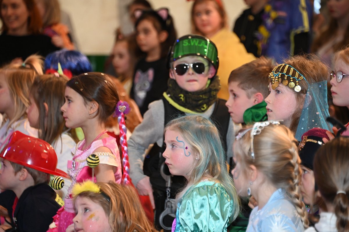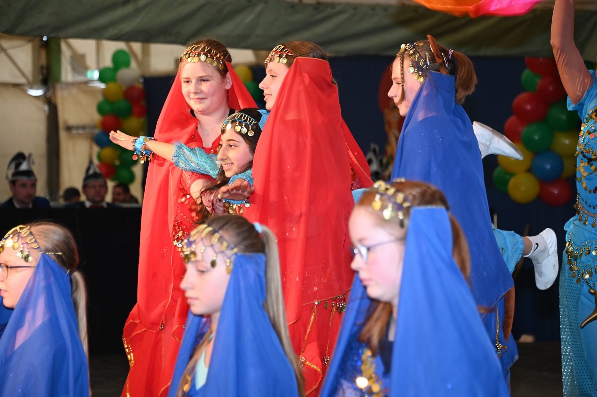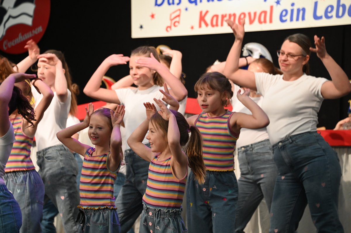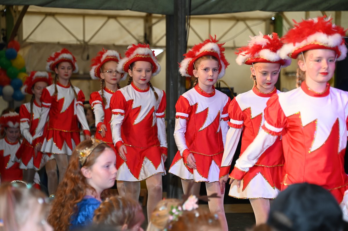 Ovenhausen (TKu). Ein fröhlich-buntes Treiben, mitreißende Musik und leuchtende Kinderaugen bestimmten am Sonntag das Bild im Festzelt am Ovenhäuser Dreiort. Der Kinderkarneval in Ovenhausen lockte mehr als 777 kleine und große Närrinnen und Narren an, die gemeinsam ein zweistündiges Bühnenprogramm mit anschließender Kinderparty feierten. Dabei stand alles unter dem Sessionsmotto „Das Grubedorf voll Sang und Klang – Karneval ein Leben lang“. Das Festzelt verwandelte sich in eine farbenfrohe Karnevalswelt. Lautstark und ausgelassen verfolgten die Kinder das Geschehen und rückten dabei immer näher an die Bühne heran, um jeden Tanz und jede Bewegung aus nächster Nähe mitzuerleben. Die Vielfalt der Kostüme reichte von Astronauten, Prinzessinnen und Cheerleadern über Bienchen und Cowboys bis hin zu Clowns und sorgte für ein buntes Gesamtbild.